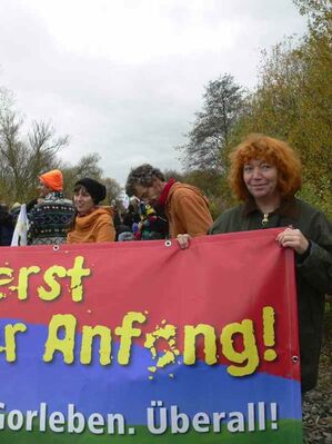 Von wegen Krawalle. Als am 6.11.2010 kurz nach 14.00 Uhr eine Kolonne von Polizei-Mannschaftswagen den Grenzort Berg in Rheinland-Pfalz verlässt, winken ganze Familien mit "Atomkraft - nein Danke"- Fahnen ihnen freundlich zu. In diesem Jahr wird kein Castor Berg passieren.