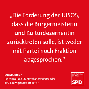 „Als Parteivorsitzender gestehe ich den Jusos durchaus zu, dass sie in der Sache und auch in der Formulierung als Jugendorganisation durchaus mal über das Ziel hinausschießen dürfen“, erklärt David Guthier als Parteichef. „In diesem Fall muss ich aber deutlich darauf hinweisen: Das ist unabgesprochen geschehen und ärgerlich. Eine solche Aktion ist der Sache nicht dienlich und stört auch den politischen Diskurs, der aktuell schwer genug ist, wie die Haushaltsdiskussion gezeigt hat, und in dem man auch jederzeit mit dem größten politischen Mitbewerber in der Stadt eine arbeitsfähige Basis erhalten muss, um die Zukunftsthemen der Stadt strategisch angehen zu können. Da ist die aktuelle Forderung der Jusos leider nicht dienlich und die Partei distanziert sich deutlich von deren Forderung.“