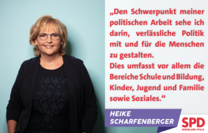 Heike Scharfenberger steht für eine bürgernahe Politik. Sowohl in Ludwigshafen als auch in Mainz setzt sie sich dabei für mehr soziale Gerechtigkeit ein.