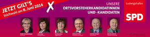 In sechs Stadtteilen entscheidet sich in einer Stichwahl am Pfingstsonnatg wer für die nächsten fünf Jahre Ortsvorstheher bzw. Ortsvorsteherin wird. Die Kandidaten der SPD haben im ersten Wahlgang am vergangenen Sonntag hervorragende Ergebnisse erzielt. Unterstützen Sie diese auch in der Stichwahl am Sonntag, 08.Juni: